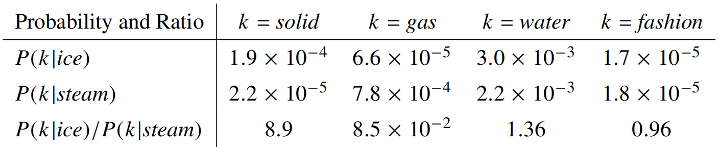 - 可以用共现概率的比值来确定:\(\frac{P_{ik}}{P_{jk}}\)