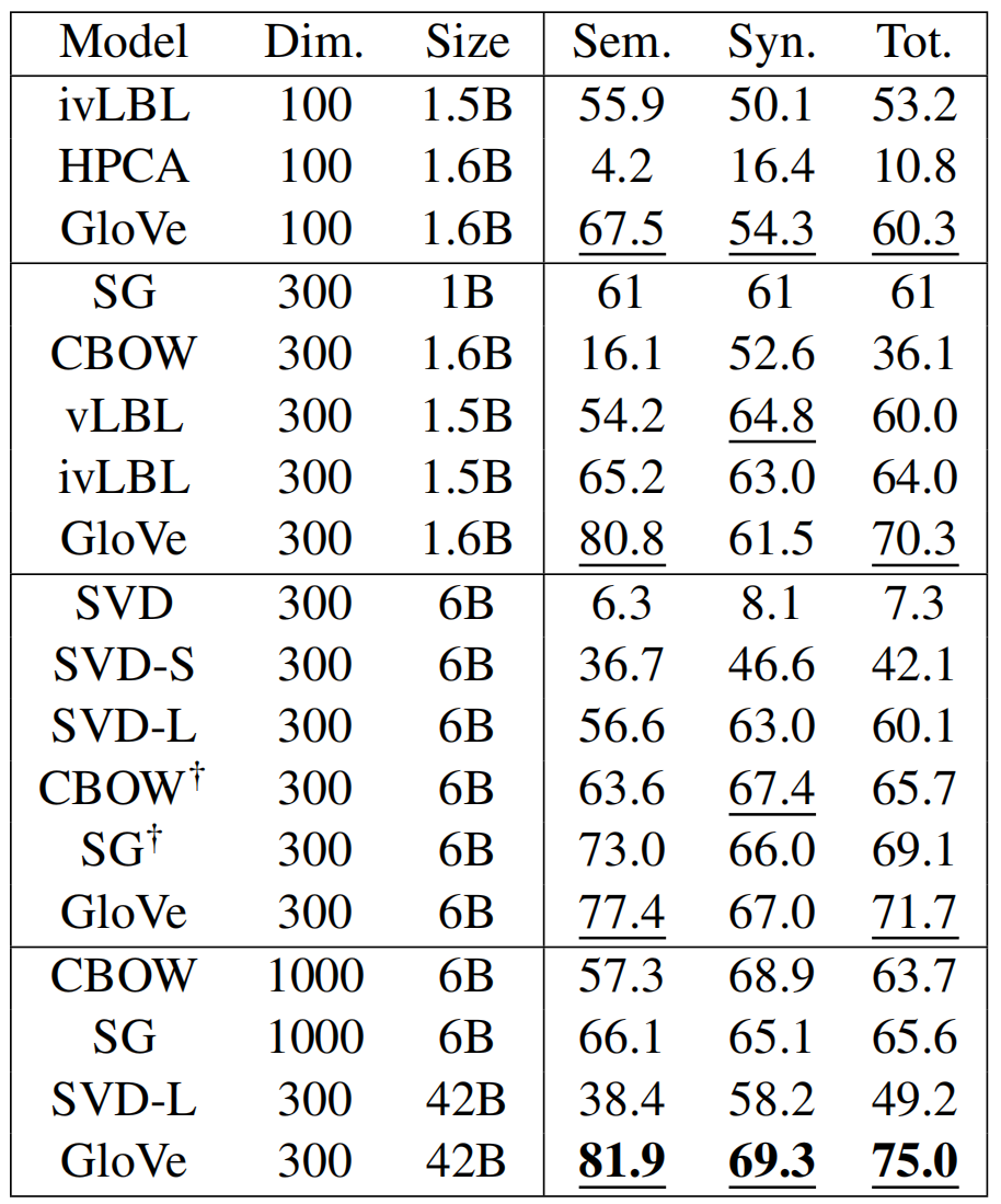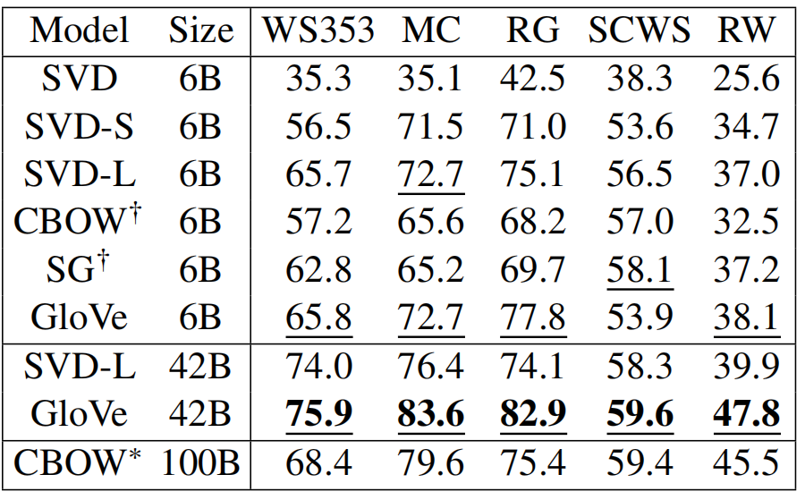 - GloVe 42B 比 Word2Vec 100B 效果还好
